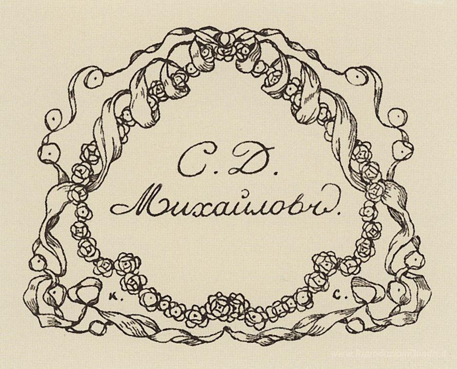 Ti offriamo una riproduzione artigianale su tela dell'opera famosa 'Exlibris di S. Mikhailov' di Konstantin Somov, dal Museo delle Riproduzioni.