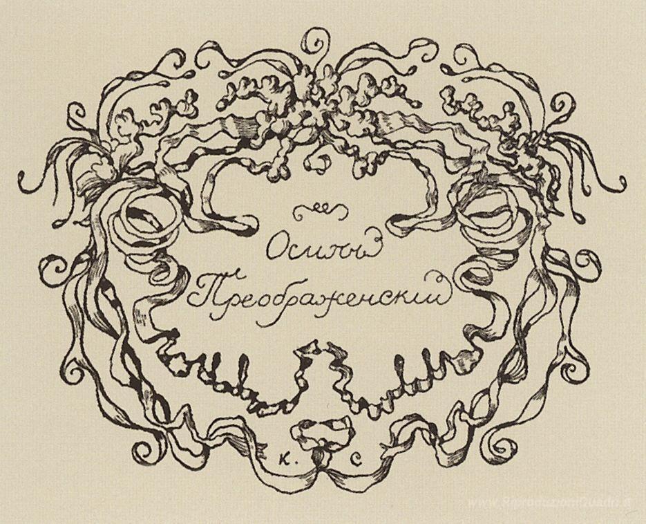 Ti offriamo una riproduzione artigianale su tela dell'opera famosa 'Exlibris O. Preobrazenskiy' di Konstantin Somov, dal Museo delle Riproduzioni.