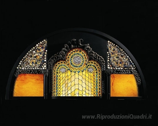 Ti offriamo una riproduzione artigianale su tela dell'opera famosa 'Finestra Lunetta' di Louis Comfort Tiffany, dal Museo delle Riproduzioni.