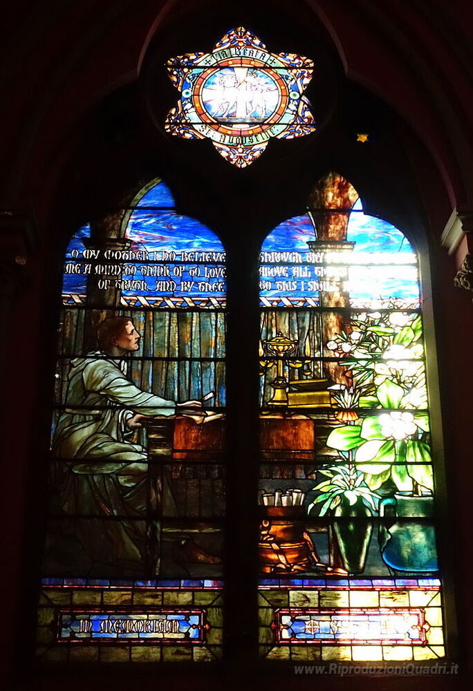 Ti offriamo una riproduzione artigianale su tela dell'opera famosa 'Finestre - Chiesa del Patto (Boston)' di Louis Comfort Tiffany, dal Museo delle Riproduzioni.