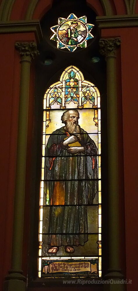 Ti offriamo una riproduzione artigianale su tela dell'opera famosa 'Finestre - Chiesa del Patto (Boston)' di Louis Comfort Tiffany, dal Museo delle Riproduzioni.