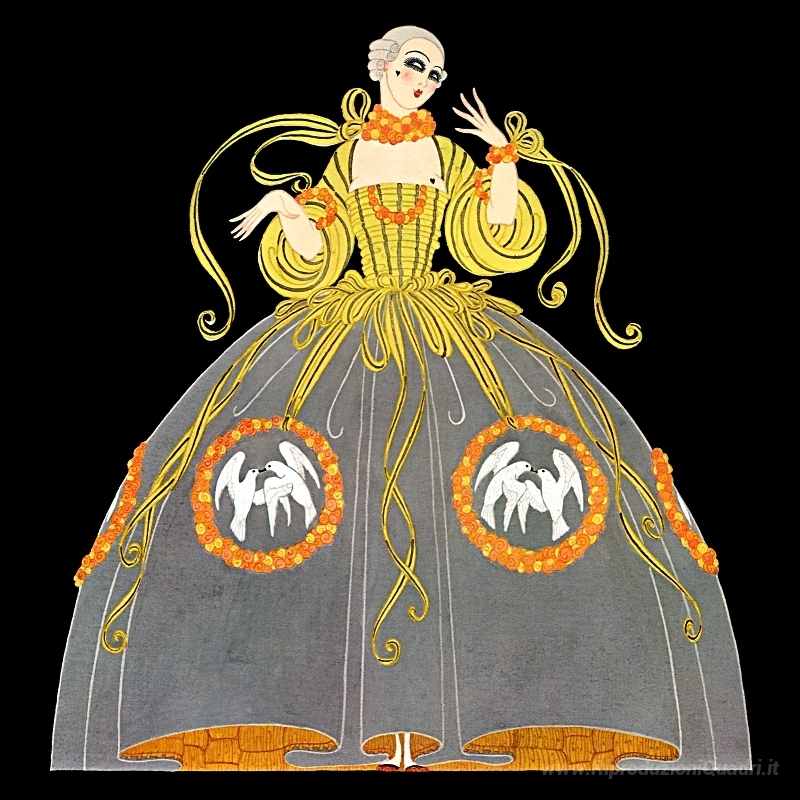 Ti offriamo una riproduzione artigianale su tela dell'opera famosa 'Ganna Walska in Manon 02' di Erte, dal Museo delle Riproduzioni.