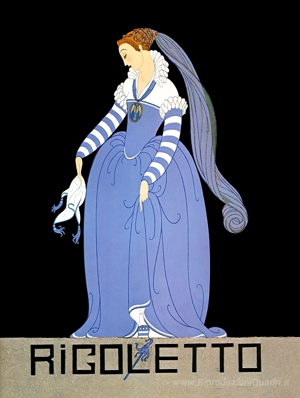 Ti offriamo una riproduzione artigianale su tela dell'opera famosa 'Ganna Walska in Rigoletto' di Erte, dal Museo delle Riproduzioni.