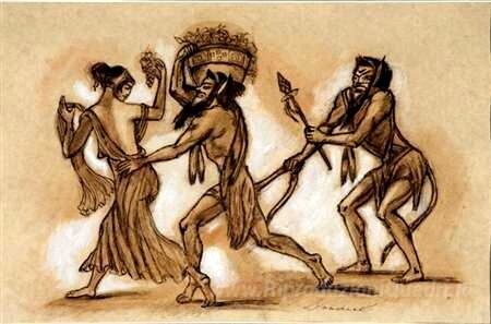 Ti offriamo una riproduzione artigianale su tela dell'opera famosa 'Gli studi di costume con figure mitologiche per il balletto "Dio' di Serge Sudeikin, dal Museo delle Riproduzioni.
