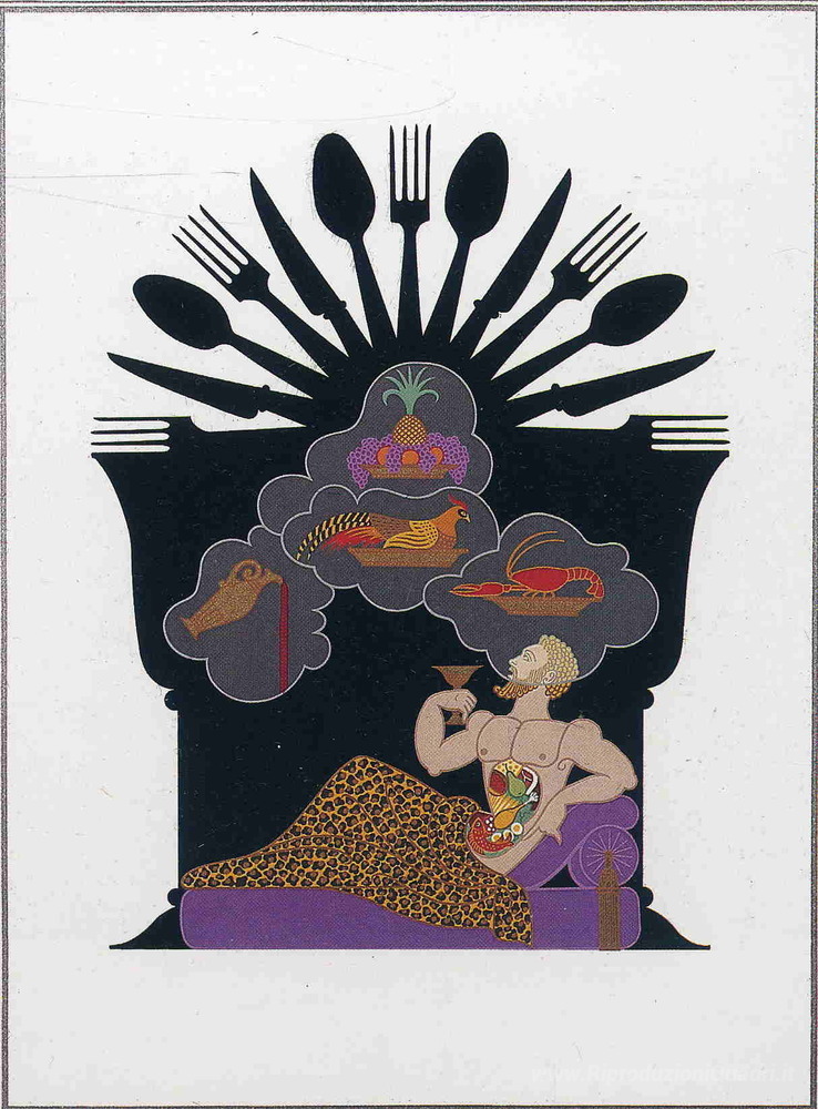 Ti offriamo una riproduzione artigianale su tela dell'opera famosa 'Golosità' di Erte, dal Museo delle Riproduzioni.