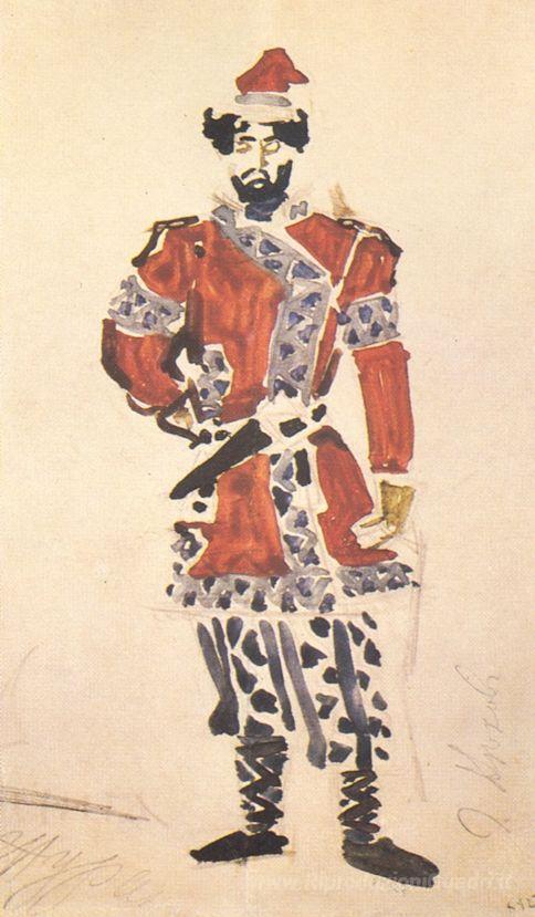 Ti offriamo una riproduzione artigianale su tela dell'opera famosa 'Huntsman del Principe (disegno di costume per l'opera "L'incanta' di Mikhail Vrubel, dal Museo delle Riproduzioni.