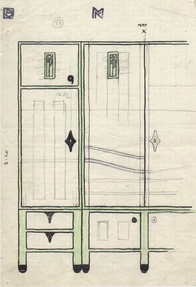 Ti offriamo una riproduzione artigianale su tela dell'opera famosa 'I progetti di disegni per un mobile nella sede del Workshop Vien' di Koloman Moser, dal Museo delle Riproduzioni.