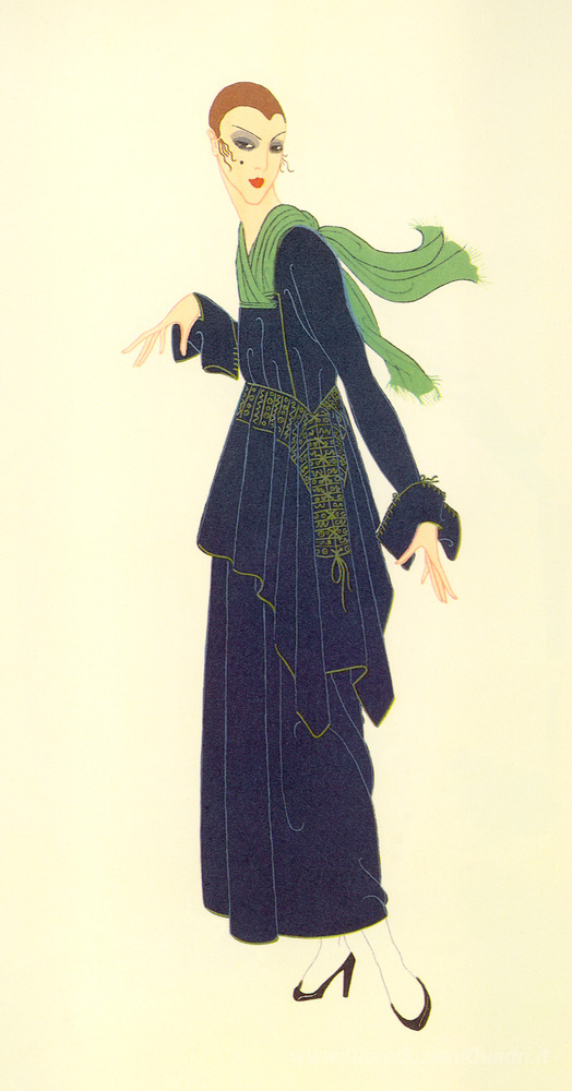 Ti offriamo una riproduzione artigianale su tela dell'opera famosa 'Il Blue Dress' di Erte, dal Museo delle Riproduzioni.