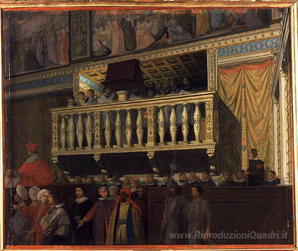 Ti offriamo una riproduzione artigianale su tela dell'opera famosa 'Il coro della Cappella Sistina' di Jean Auguste Dominique Ingres, dal Museo delle Riproduzioni.