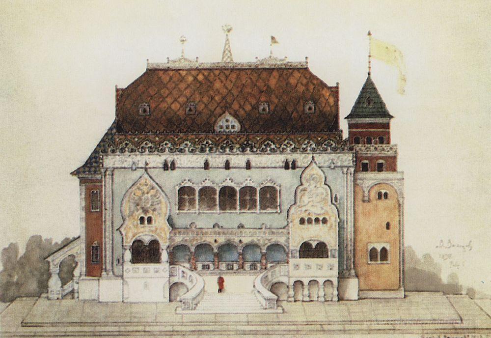 Ti offriamo una riproduzione artigianale su tela dell'opera famosa 'Il progetto del padiglione russo alla Fiera di Parigi' di Viktor Vasnetsov, dal Museo delle Riproduzioni.