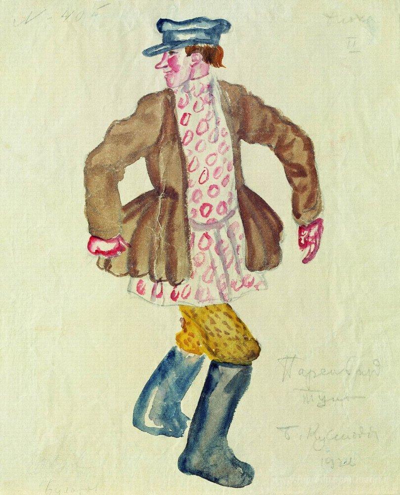 Ti offriamo una riproduzione artigianale su tela dell'opera famosa 'Il ragazzo da Tula' di Boris Kustodiev, dal Museo delle Riproduzioni.