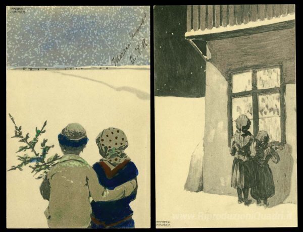 Ti offriamo una riproduzione artigianale su tela dell'opera famosa 'Immagini di Natale' di Raphael Kirchner, dal Museo delle Riproduzioni.