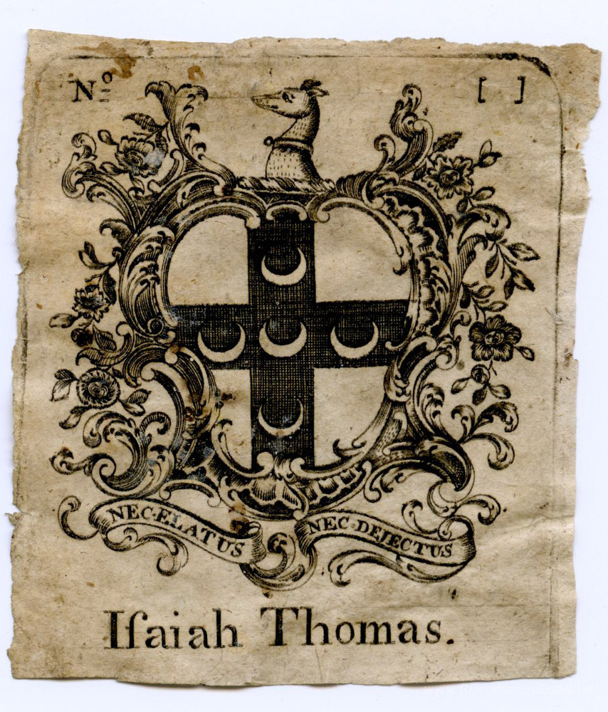 Ti offriamo una riproduzione artigianale su tela dell'opera famosa 'Isaiah Thomas Bookplate' di Paul Revere, dal Museo delle Riproduzioni.