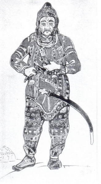 Ti offriamo una riproduzione artigianale su tela dell'opera famosa 'Konchak' di Nicholas Roerich, dal Museo delle Riproduzioni.