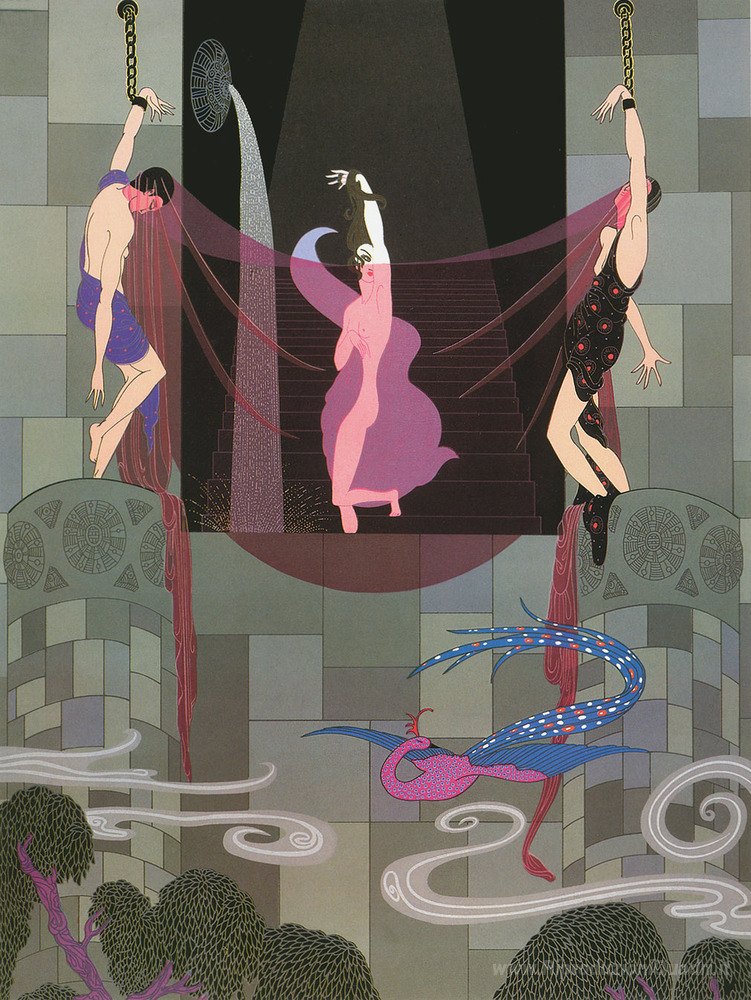 Ti offriamo una riproduzione artigianale su tela dell'opera famosa 'La casta Susanna' di Erte, dal Museo delle Riproduzioni.