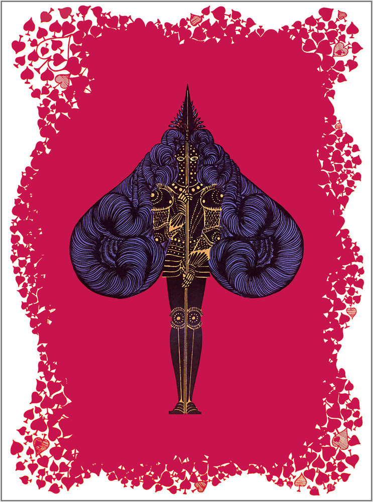 Ti offriamo una riproduzione artigianale su tela dell'opera famosa 'L'Aces Spades' di Erte, dal Museo delle Riproduzioni.