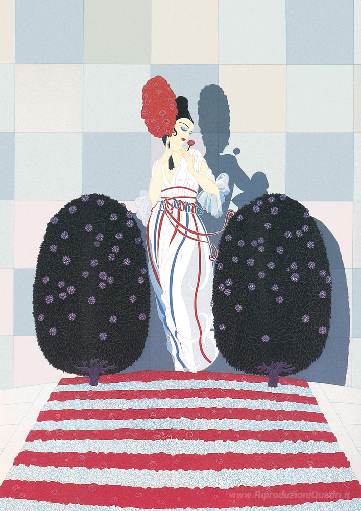 Ti offriamo una riproduzione artigianale su tela dell'opera famosa 'Lafayette' di Erte, dal Museo delle Riproduzioni.