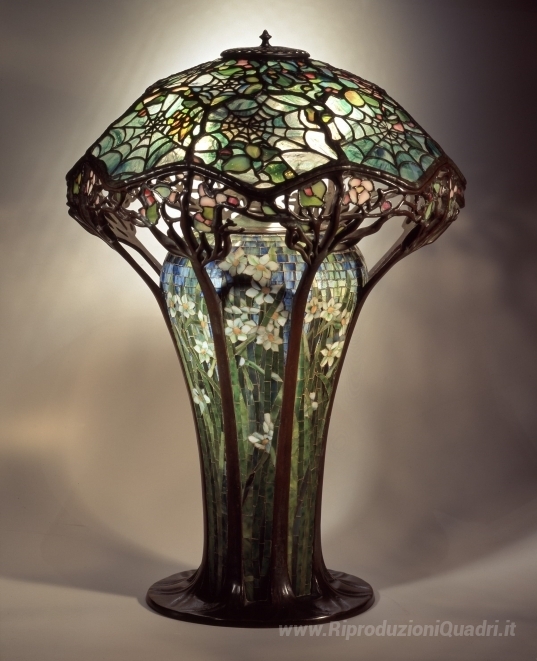 Ti offriamo una riproduzione artigianale su tela dell'opera famosa 'Lampada Biblioteca. Disegno Cobweb' di Louis Comfort Tiffany, dal Museo delle Riproduzioni.