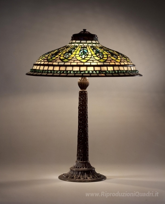 Ti offriamo una riproduzione artigianale su tela dell'opera famosa 'Lampada Biblioteca. Disegno Narghilè indiano' di Louis Comfort Tiffany, dal Museo delle Riproduzioni.