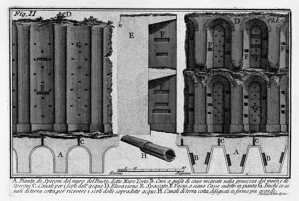 Ti offriamo una riproduzione artigianale su tela dell'opera famosa 'Le antichità romane, t. 1, Piatto XI. Muro Aureliano: Muro Torto' di Giovanni Battista Piranesi, dal Museo delle Riproduzioni.