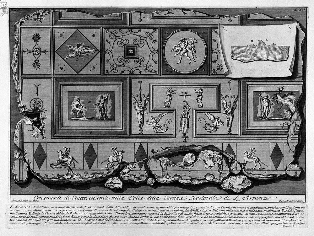 Ti offriamo una riproduzione artigianale su tela dell'opera famosa 'Le antichità romane, t. 2, Piatto XII. Prospetto e profilo di un' di Giovanni Battista Piranesi, dal Museo delle Riproduzioni.