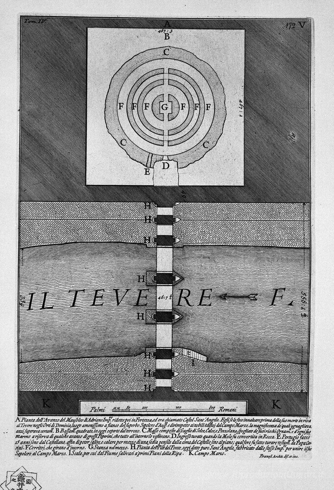 Ti offriamo una riproduzione artigianale su tela dell'opera famosa 'Le antichità romane, t. 4, Piatto IV. Veduta del Ponte e il Maus' di Giovanni Battista Piranesi, dal Museo delle Riproduzioni.