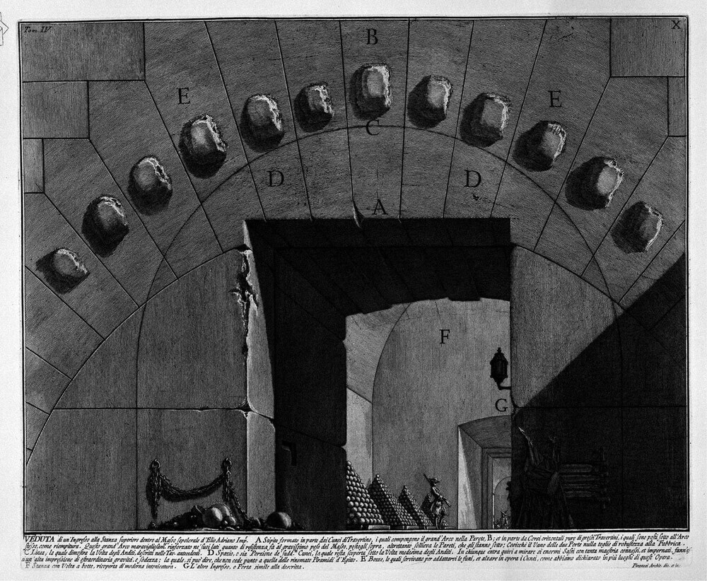 Ti offriamo una riproduzione artigianale su tela dell'opera famosa 'Le antichità romane, t. 4, Piatto XI. Vista della fondazione sot' di Giovanni Battista Piranesi, dal Museo delle Riproduzioni.