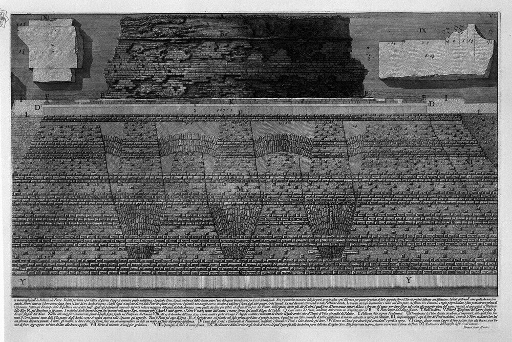 Ti offriamo una riproduzione artigianale su tela dell'opera famosa 'Le antichità romane, t. 4, Tavola VI. Dettagli di costruzione de' di Giovanni Battista Piranesi, dal Museo delle Riproduzioni.