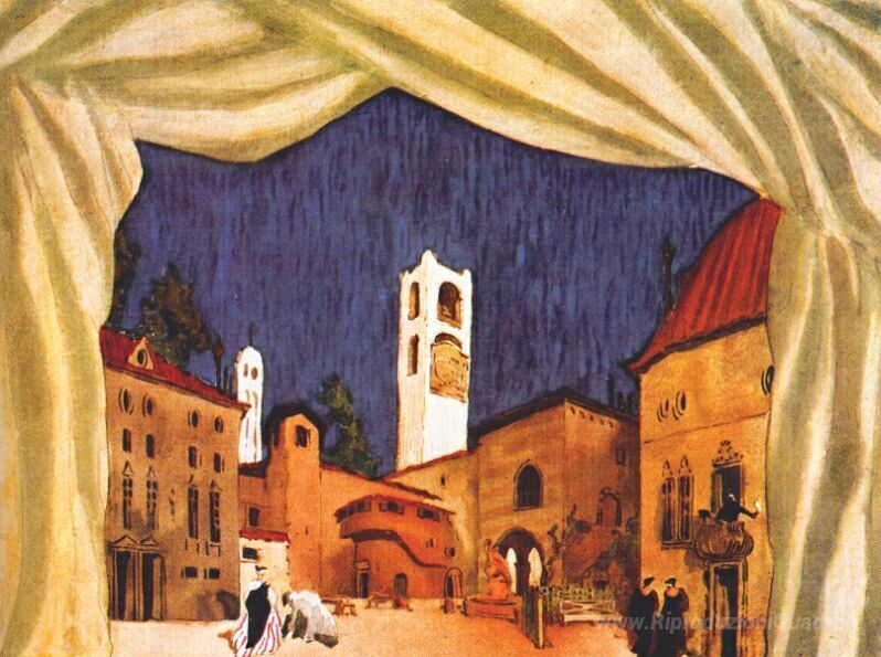 Ti offriamo una riproduzione artigianale su tela dell'opera famosa 'Les femmes de bonne humeur - scenografia' di Leon Bakst, dal Museo delle Riproduzioni.