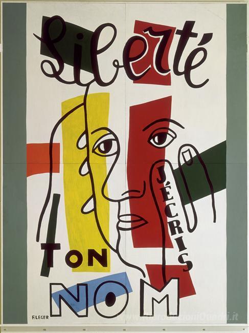 Ti offriamo una riproduzione artigianale su tela dell'opera famosa 'Libertà, scrivo il tuo nome' di Fernand Leger, dal Museo delle Riproduzioni.