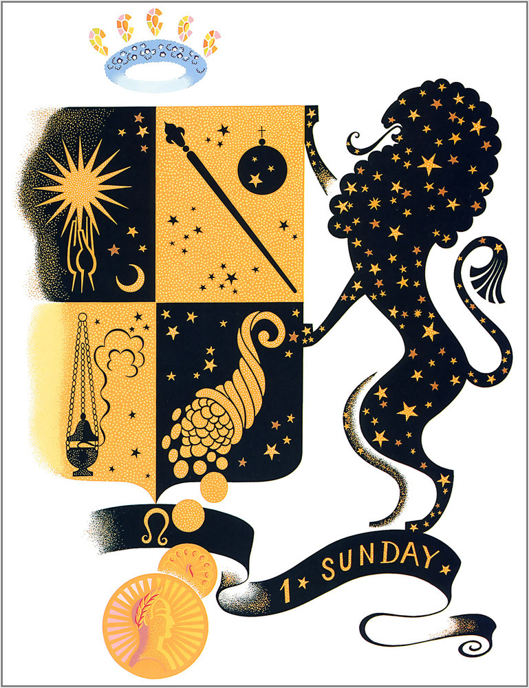 Ti offriamo una riproduzione artigianale su tela dell'opera famosa 'Lo Zodiaco, Leo' di Erte, dal Museo delle Riproduzioni.