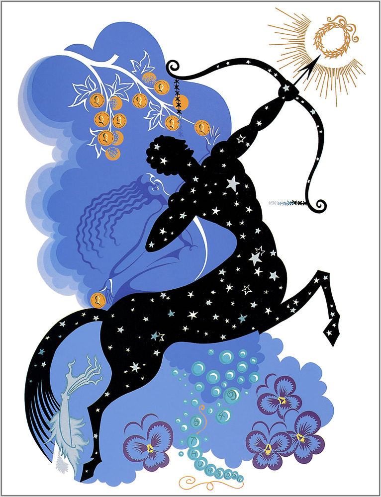 Scoprite l'incanto del dipinto Lo Zodiaco, Sagittario realizzato dall'illustre artista Erte, una figura straordinaria nel panorama artistico del XX secolo. Conosciuto per il suo stile distintivo che fonde arte e moda, Erte ha saputo catturare l'essenza degli archetipi attraverso una sintesi unica di eleganza e sofisticazione. Ogni opera è una celebrazione della bellezza e dell'estetica, riflettendo la sua passione per il design e la narrazione visiva.