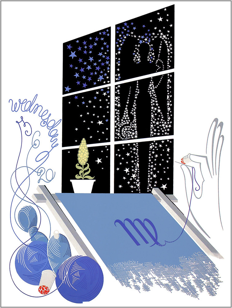 Ti offriamo una riproduzione artigianale su tela dell'opera famosa 'Lo Zodiaco, Vergine' di Erte, dal Museo delle Riproduzioni.