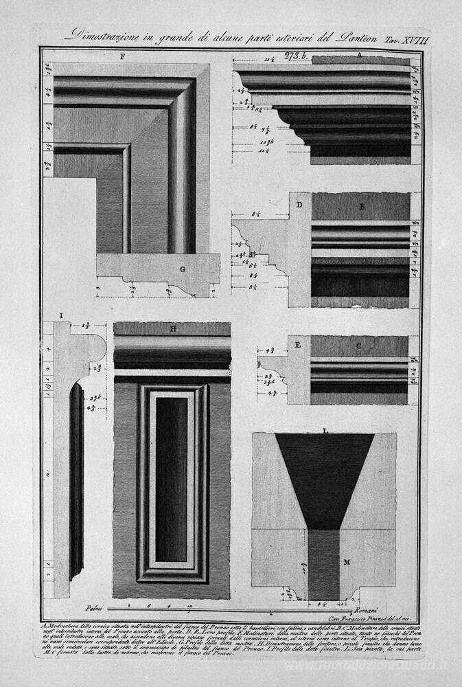 Ti offriamo una riproduzione artigianale su tela dell'opera famosa 'Manifestazione a gran parte degli esterni del Pantheon' di Giovanni Battista Piranesi, dal Museo delle Riproduzioni.