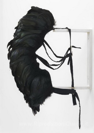 Ti offriamo una riproduzione artigianale su tela dell'opera famosa 'Maschera Cockfeather' di Rebecca Horn, dal Museo delle Riproduzioni.