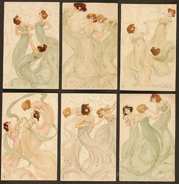 Ti offriamo una riproduzione artigianale su tela dell'opera famosa 'Mayflyes' di Raphael Kirchner, dal Museo delle Riproduzioni.