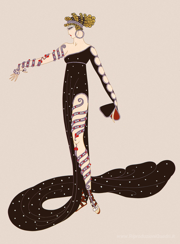 Ti offriamo una riproduzione artigianale su tela dell'opera famosa 'Meraviglioso' di Erte, dal Museo delle Riproduzioni.