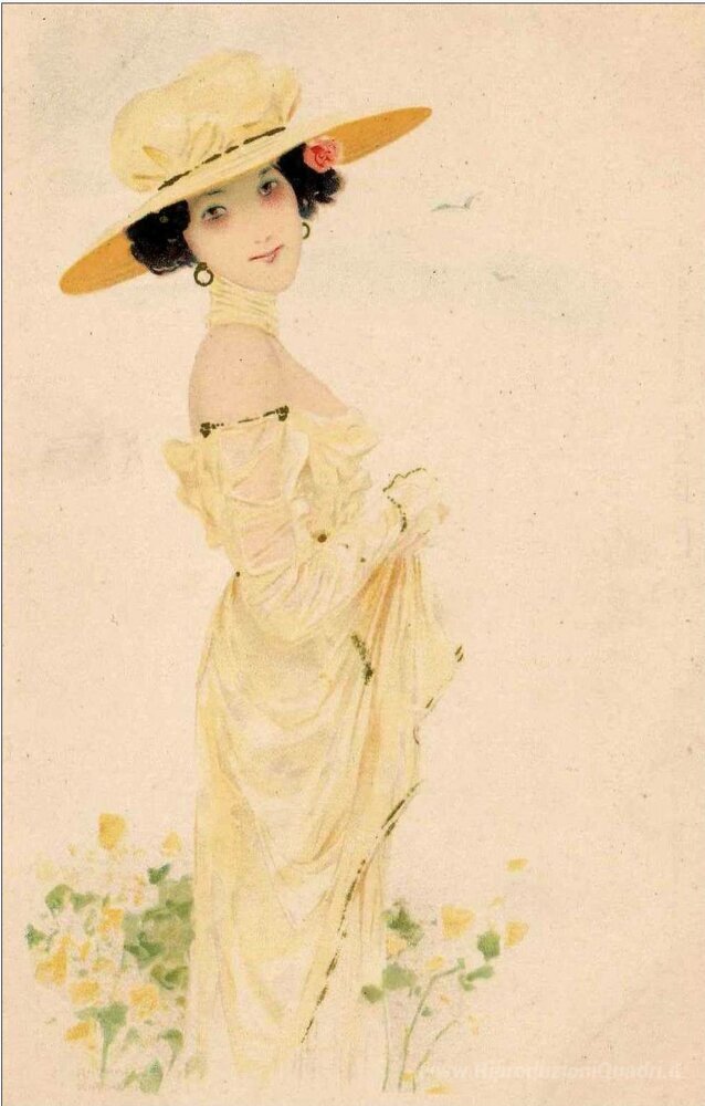 Benvenuti nella nostra selezione esclusiva di dipinti a olio italiani, dove l'arte si fonde con l'eleganza e la tradizione. Oggi vi presentiamo Moderna Ragazze, un'opera straordinaria dell'artista austriaco Raphael Kirchner, noto per il suo stile distintivo che unisce influenze classiche e modernismo. Kirchner, affermatosi nel panorama artistico del XX secolo, ha saputo catturare la bellezza femminile attraverso una palette di colori vivaci e una tecnica raffinata, rendendo ogni suo dipinto un'esperienza visiva indimenticabile.