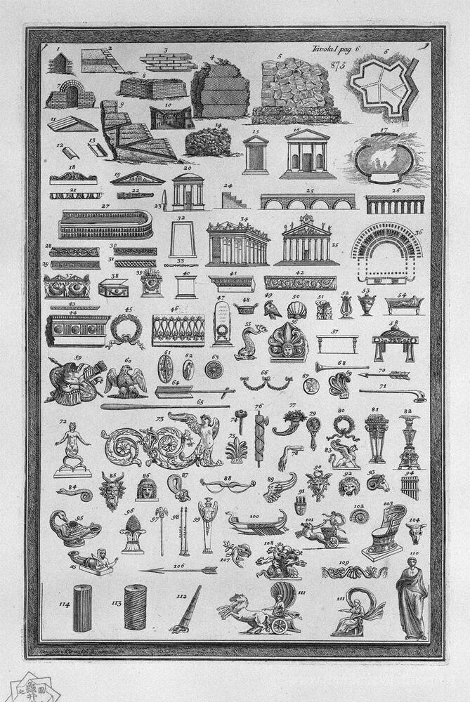 Ti offriamo una riproduzione artigianale su tela dell'opera famosa 'Monumenti etruschi di vario genere in materia di usi sacri, pubb' di Giovanni Battista Piranesi, dal Museo delle Riproduzioni.