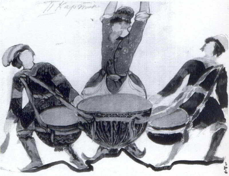 Ti offriamo una riproduzione artigianale su tela dell'opera famosa 'Musicisti' di Nicholas Roerich, dal Museo delle Riproduzioni.