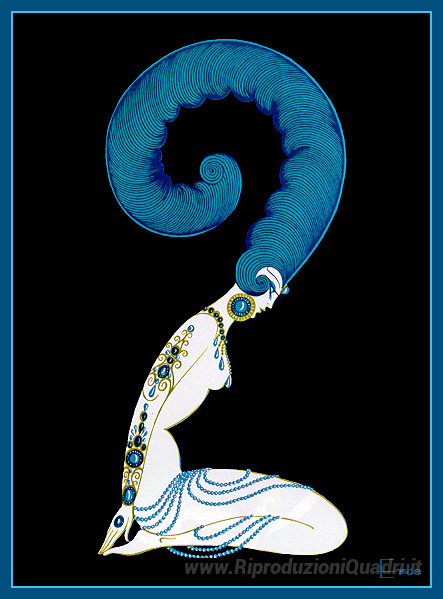Ti offriamo una riproduzione artigianale su tela dell'opera famosa 'Numero 2' di Erte, dal Museo delle Riproduzioni.
