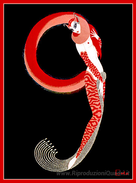 Ti offriamo una riproduzione artigianale su tela dell'opera famosa 'Numero 9' di Erte, dal Museo delle Riproduzioni.