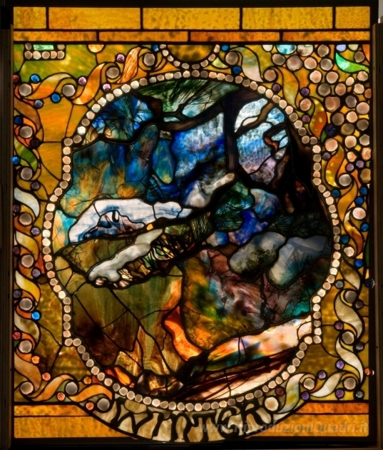 Ti offriamo una riproduzione artigianale su tela dell'opera famosa 'Pannello inverno dalla finestra Four Seasons' di Louis Comfort Tiffany, dal Museo delle Riproduzioni.