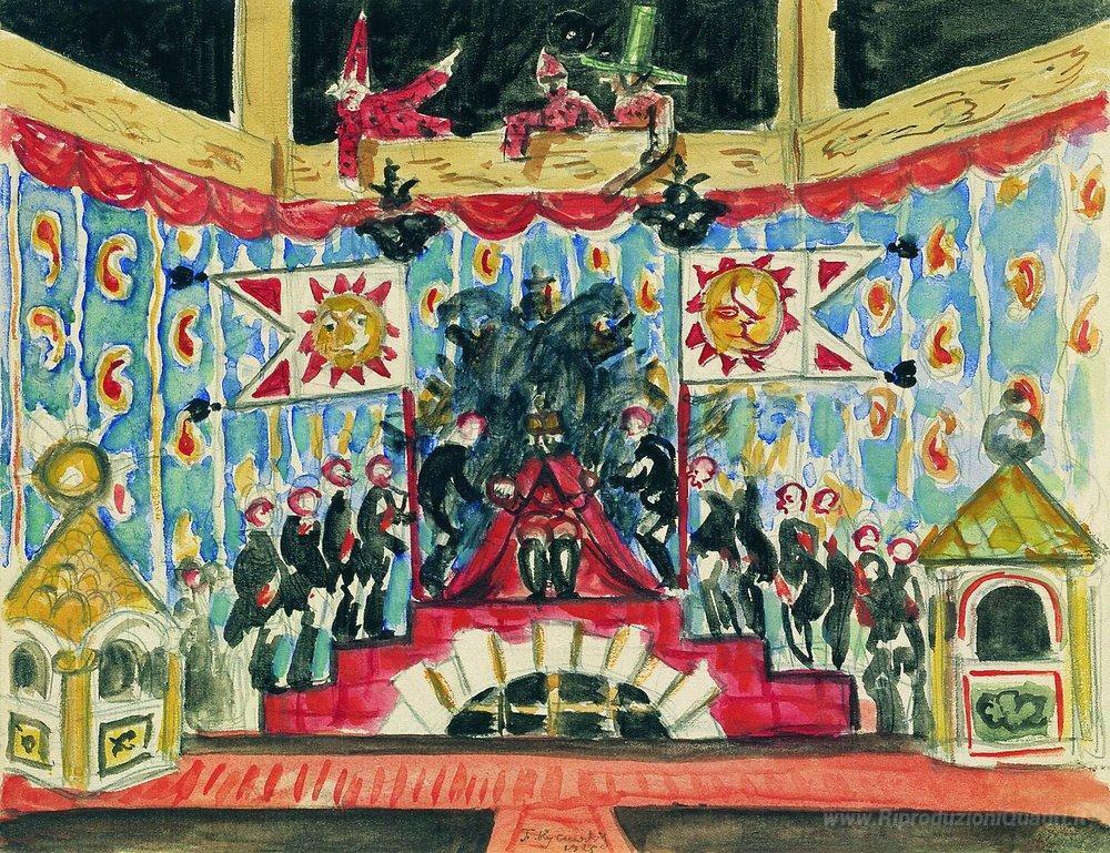 Scoprite la straordinaria bellezza dell'opera Pietroburgo. Palazzo realizzata dal maestro dell'arte russa, Boris Kustodiev. Kustodiev, un artista rinomato per le sue vivaci composizioni e la sua capacità di catturare l'essenza della vita russa, si è distinto nel panorama artistico con il suo stile unico che fonde il realismo con la ricchezza dei colori e dei dettagli.
