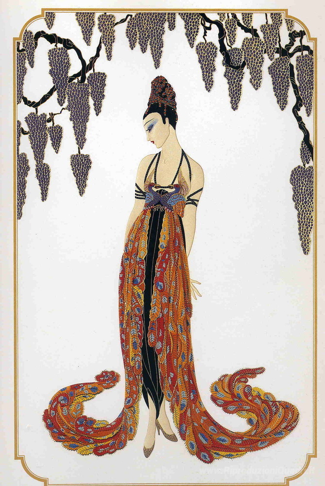 Ti offriamo una riproduzione artigianale su tela dell'opera famosa 'Piuma Gown' di Erte, dal Museo delle Riproduzioni.