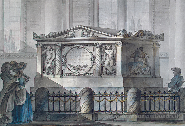 Ti offriamo una riproduzione artigianale su tela dell'opera famosa 'Progettazione della tomba di Samuel Greig a Tallinn' di Giacomo Quarenghi, dal Museo delle Riproduzioni.