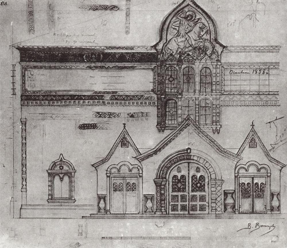 Ti offriamo una riproduzione artigianale su tela dell'opera famosa 'Progetto facciata Tretyakov Gallery' di Viktor Vasnetsov, dal Museo delle Riproduzioni.