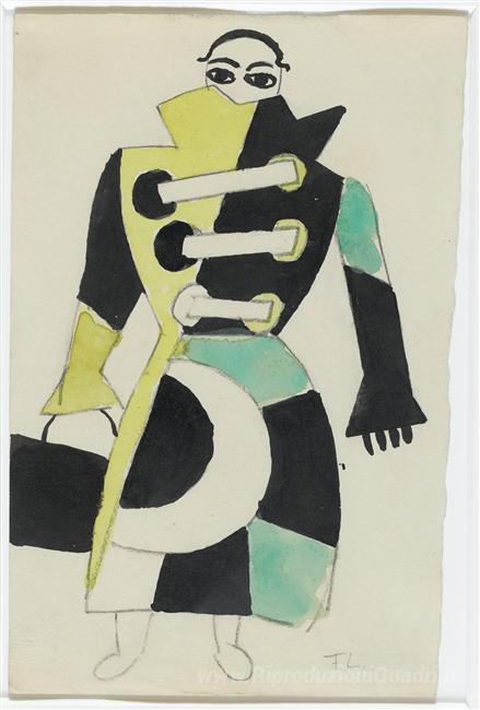 Ti offriamo una riproduzione artigianale su tela dell'opera famosa 'Progetto per costume femminile Pista di Pattinaggio' di Fernand Leger, dal Museo delle Riproduzioni.