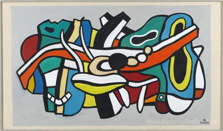 Ti offriamo una riproduzione artigianale su tela dell'opera famosa 'Progetto per un murale' di Fernand Leger, dal Museo delle Riproduzioni.