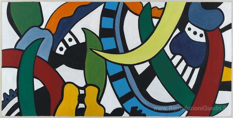 Ti offriamo una riproduzione artigianale su tela dell'opera famosa 'Progetto per un murale Vulcania' di Fernand Leger, dal Museo delle Riproduzioni.